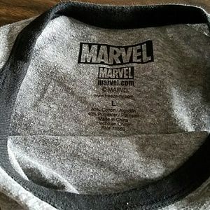 Yellow Pokemon v-neck and a grey Marvel tank top