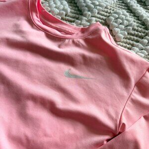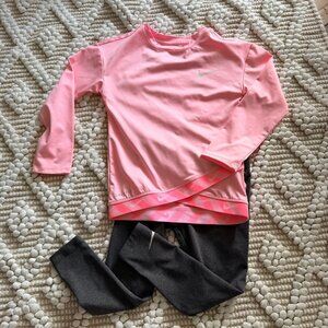 - Nike set with pink cross hem performance fabric long sleeve top with gray performance leggings (this set was never worn; NWOT).