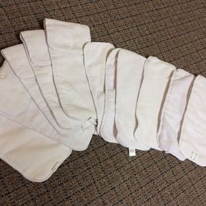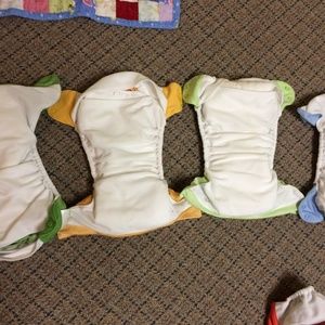 15 diapers with 30 total inserts. Some long and some short inserts to fit your baby's needs. 3rd picture shows the only staining I can find.