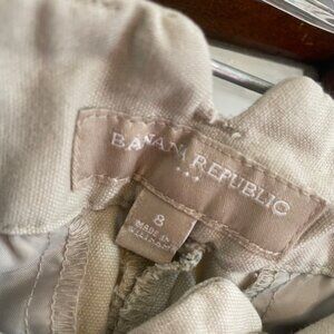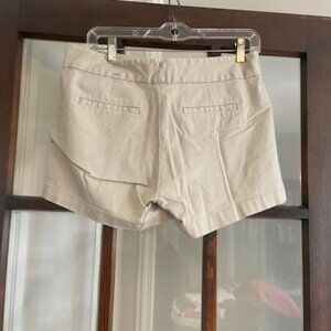 2. Great condition Banana Republic khaki shorts. Size 8. A little bit of wear on the back side (see pics) but can't tell when on. Measurements: 16" waist, 19.5" hips, 12" long, 3.5" inseam.