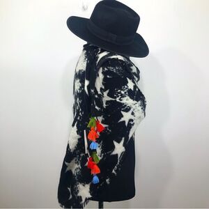 Bundle of Steve Madden Black White Star Tassel Scarf Universal Thread Wool Fedora Hat Set