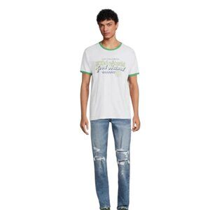 Grab a deal with this bundle of new ringer tees. Stylish t-shirts featuring a bold graphic design. Perfect for casual outings. Comfortable fit with contrast trim accents.