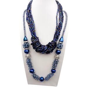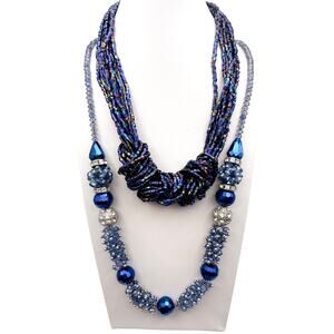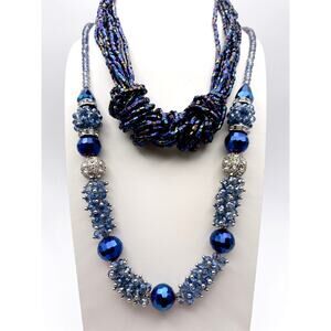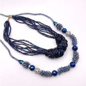 Bundle includes two matching blue bead necklaces