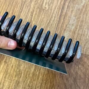 One Wild Fable two tone claw hair clip. Black in color on one side, with silver in color glitter on the opposite side. Apparent plastic for the most part.