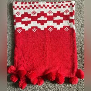 Cozy fleece blanket and mug in vibrant red. Perfect for gifting.