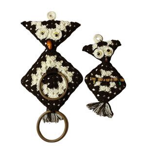 Bundle of Vintage 60s/70s Crocheted Owl Hanging Towel Rack and Note Holders