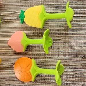 This includes all pieces seen here. They all just went through the dishwasher but clean again upon arrival. Only flaw noted is small bite mark on yellow pineapple. No other flaws.