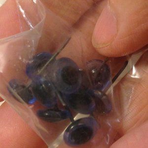 10 pks of TOAOB doll eyes. Plastic blue with black eyeball. All different sizes from tiny to about 1/4". Looks like each bag contains about 10 to 12 eyes.
