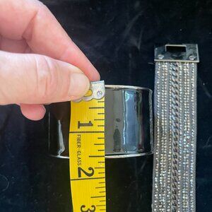 A fun bundle of three bracelets: Two snap bracelets and a puzzle lock bracelet. See photos for details and measurements!