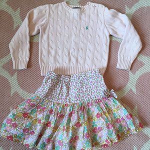 Very good used condition. The only flaws I noticed is a tiny bit of cracking on the black letters and minor wash wear on a few items. The hot pink outfit and black gap shirt are size 3, the rest are size 4. Multiple brands including: Gap, Ralph Lauren, H&M
