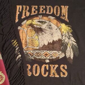 Womens Loop 18 Black Freedom Rocks Graphic Cotton Tshirt Fringe Accent