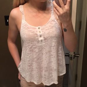 Green polyester tank: Candies, white lace down sides and upper back, size medium, perfect condition - never worn Pink cotton tank: Heart Hips, very soft material, size small, perfect condition - worn only a few times. White cotton tank: Love Culture, see-through with lace straps and on upper back, size small, perfect condition - worn only a few times
