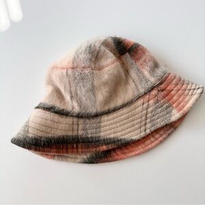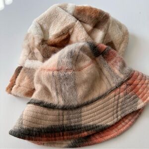 Bundle of two neutral plaid bucket hats, faux fur and wool blend. One size
