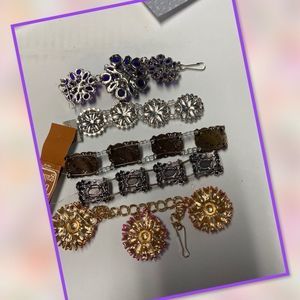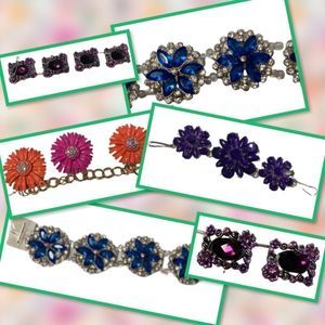 Five different pieces. Purple Flower Piece, Blue Flower Piece, Ruby Piece , Orange and Pink Flower Set, Purple Gem Piece