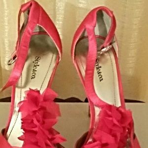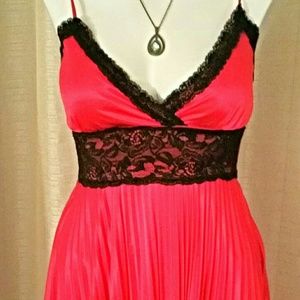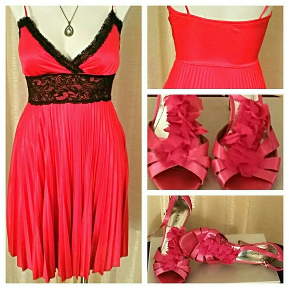 Sexy frushia sun pleated slip dress with lace and ruffled frushia heels size 7