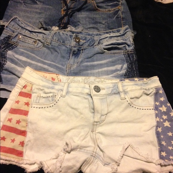 3 pairs blue jean shorts The flags were never worn. Size 7. Vanilla star Maurices & Amethyst
