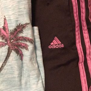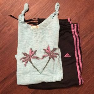 Billabong top with relaxed adidas pants, super cute and comfy.