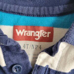 Both long sleeve striped tops are Wrangler size 4T. They show a little wear and pilling.