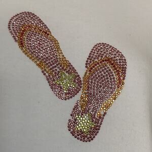 This is a bundle of three T-shirts that are embellished with crystals. The first one is a gray T-shirt with an elephant motif. The second is a white T-shirt with flip-flop motif and the third is a tank top with a palm tree motif.
