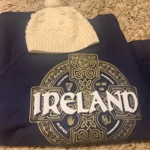 Classic navy Ireland sweatshirt by Fruit of the Loom and Irish knit hat