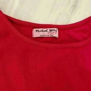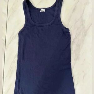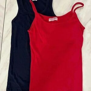 Two Michael Stars tank tops. One navy blue, size small 24 1/2” top to bottom, and 1 deep pink tank top with bra built in, 22”, top to bottom. OS for pink, but definitely a small. Blue tank never worn, pink wore once.