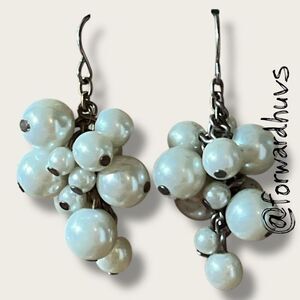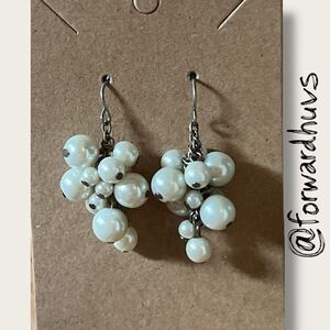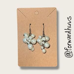 Add a touch of elegance and movement to your jewelry collection with these faux pearl cluster earrings. Each earring features an arrangement of various-sized faux pearls cascading from silver tone fishhook wires, creating a soft, flowing silhouette.