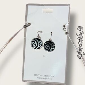 • Necklace: Wire-style with black and silver swirl pendant