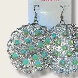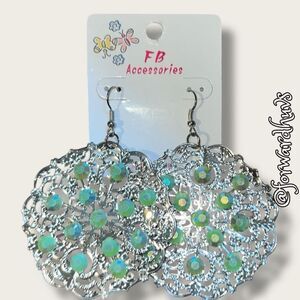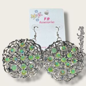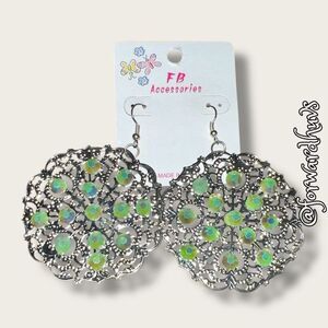 Bundle Sale 3 for $15 | FB Accessories Silver Tone Earrings with Green Sparkly A