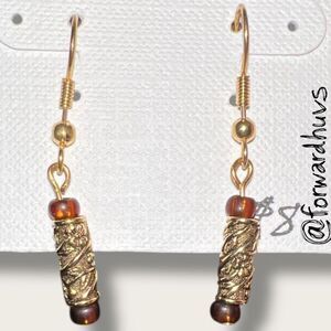 These beautifully handcrafted earrings showcase intricate craftsmanship and a refined design. Measuring approximately 1.5 inches from top to bottom, they feature a dangle style suspended from fishhook-style earring backs for comfortable wear.