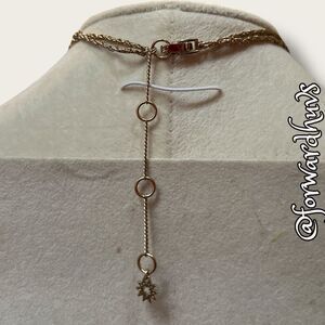 - Design: Layered chains with nested rhinestone pendants