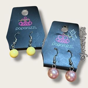 This listing includes two pairs of Paparazzi brand earrings, each offering a vibrant pop of color and lightweight design. Both pairs are displayed on original Paparazzi earring cards and feature a comfortable fishhook wire closure.