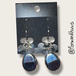 These silver tone dangle earrings feature a stylish design with a polished main bead that catches the light beautifully. Above the main bead, a cluster of tassel beads adds movement and texture, creating an elegant and dynamic look. The earrings hang from latch back-style wires, ensuring a secure and comfortable fit.