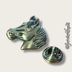 This vintage silver-tone pin features a beautifully detailed horse design. The pin is crafted with refined detailing and a polished silver-tone finish, making it a unique collectible or stylish accessory.