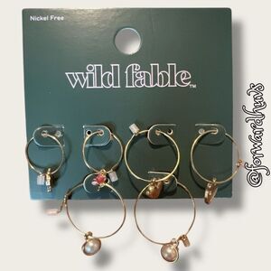 This stylish earring trio from Wild Fable features three pairs of gold-tone hoop earrings, each with unique charms. The set includes:
