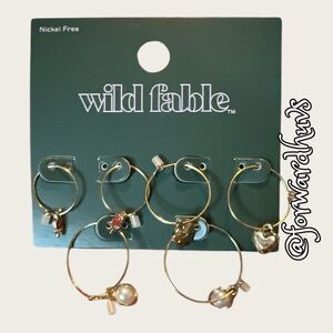 This stylish earring trio from Wild Fable features three pairs of gold-tone hoop earrings, each with unique charms. The set includes: