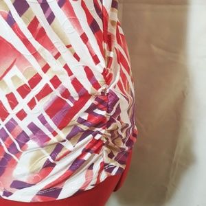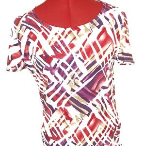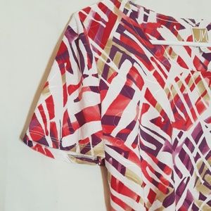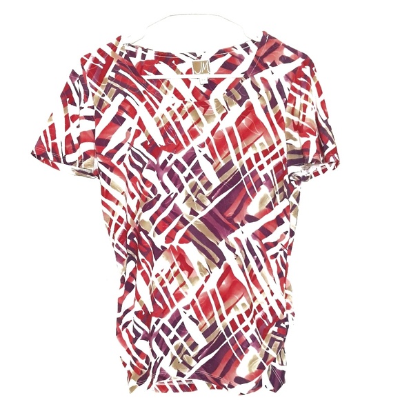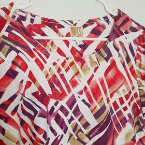 Red, Purple, Green, and White design JM Collection top. In great condition, no flaws, stains, or tears. Size P/M (US 10/12)