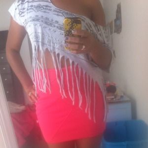 This Papaya skirt is stretchy & great to slip on to go out with friends. It's paired with a Papaya off the shoulder shirt which can be bundled.