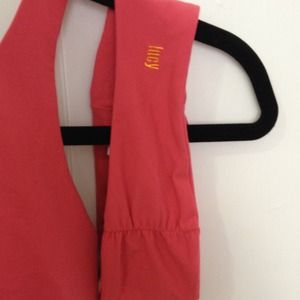New with tags yoga/exercise top with built in bra. High gathered neck with cross cross straps in back. Matching headband with rouching.