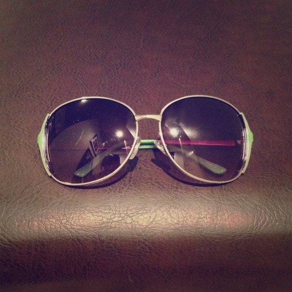 Large frame silver aviators with green sides. Excellent condition and stylish