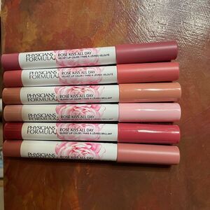 Bundle of six (6) Physician's Formula velvet lip colors. These lipsticks smell amazing! (They smell like roses, very floral sweet scent <3) It's amazing! I've never had a lip gloss, lip tint, etc. ever that smells as good as these. All brand new, never opened, NWT. These are thick crayon-style application lip colors that last a long time. Use a pencil sharpener when they get low. These are anywhere from $9 - $15 each brand new, depending on the store. This line makes 12 different amazing and beautiful colors! I will never use any other daily lip color. Better than Kylie Matte Lip Kits! (No Joke). These go on smoother, smell WAY better, stay on longer, have a great matte finish, and are more quality. I keep at least two (2) in my purse with me at all times. 10/10 would recommend.