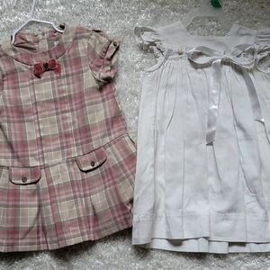 1 white dress ruffle sleeve with embroidery work and bow at bust