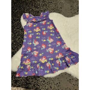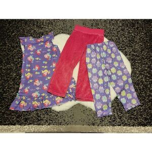 Bundle of 3 sleepwear for toddler girls, all size 4T, 1 purple nightgown with mermaid design, 1 hot pink fleece pants, 1 thin cotton purple owl design pair of pants, all in excellent condition.