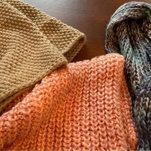 4 women's scarves, two of them are old navy brand, not sure about the others. All chunky knit scarf