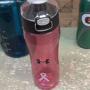Bundle of 4 water tumblers. Bundle includes: 30 oz. Gatorade GX non slip squeeze bottle, 2nd one is 64oz. water bottle with fold in spout, 3rd one is 22oz. Under Armour elevate Tritan bottle with flip top lid made by Thermos, and the 4th one is an official 20 oz. Gatorade squeeze water bottle sports drink. All are preowned and in good condition.