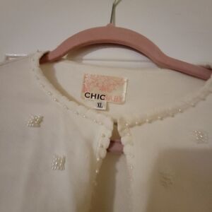 Big Girls Cropped Sweater. Cream with Faux Pearl trim-XL. Black velvet size 12. Silver sheer with rhinestone closure size XL. Bundle all the for $30 or best offer.
