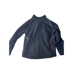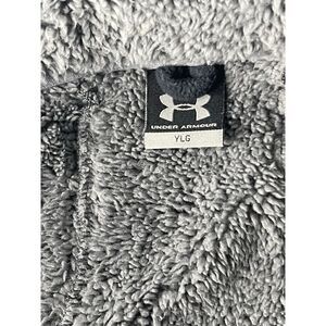 - Black Under Armour fleece zip up jacket size youth large and in great condition! Soft black fleece on the outside and furry gray fleece on the inside as well as the outside lining. Two pockets at the waist and a zip pocket at the chest.