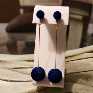 Bundle of earrings with the same style. One pair is red and gold, one pair is gray and gold, and the last pair is navy blue and gold.
