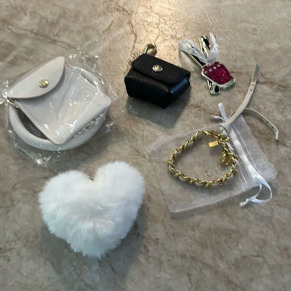Bundle of keychains. One nail polish ornament and one chain and leather like bracelet. All new.