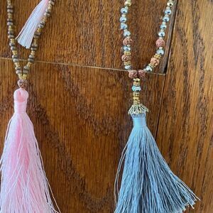 One pink tassel necklace and one blue beaded tassel boho necklace
