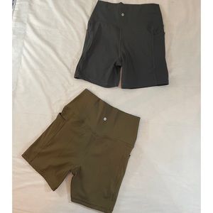 Bundles of Two Women’s Athletic Shorts Gray and Green Súper Cute Soft and Stretch , Side Pockets for Phone perfect for Workouts